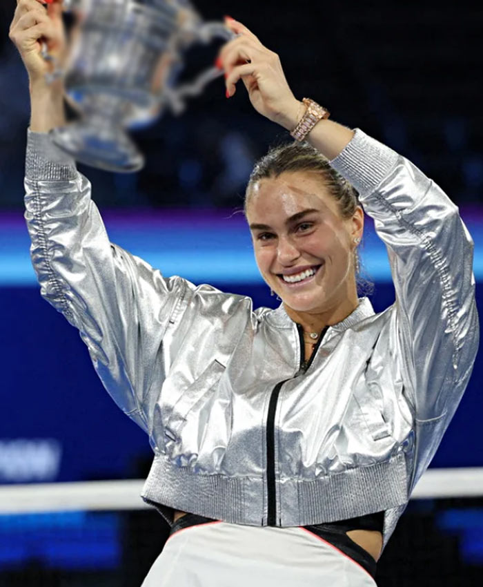 Aryna Sabalenka, the Belarusian and currently World No.1 professional women’s tennis player, received her second consecutive 2025 US Open trophy while wearing a silver cropped bomber jacket. Because of her extreme popularity, the 2025 US Open Aryna Sabalenka Silver Jacket garnered the attention of her female fans and fashion enthusiasts alike. Whether you are her fan or love wearing metallics, you would love to have the same jacket in your closet. If yes, the Oskar Jacket has got you covered on this!