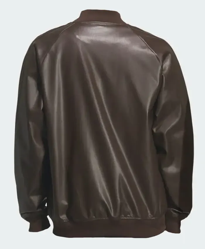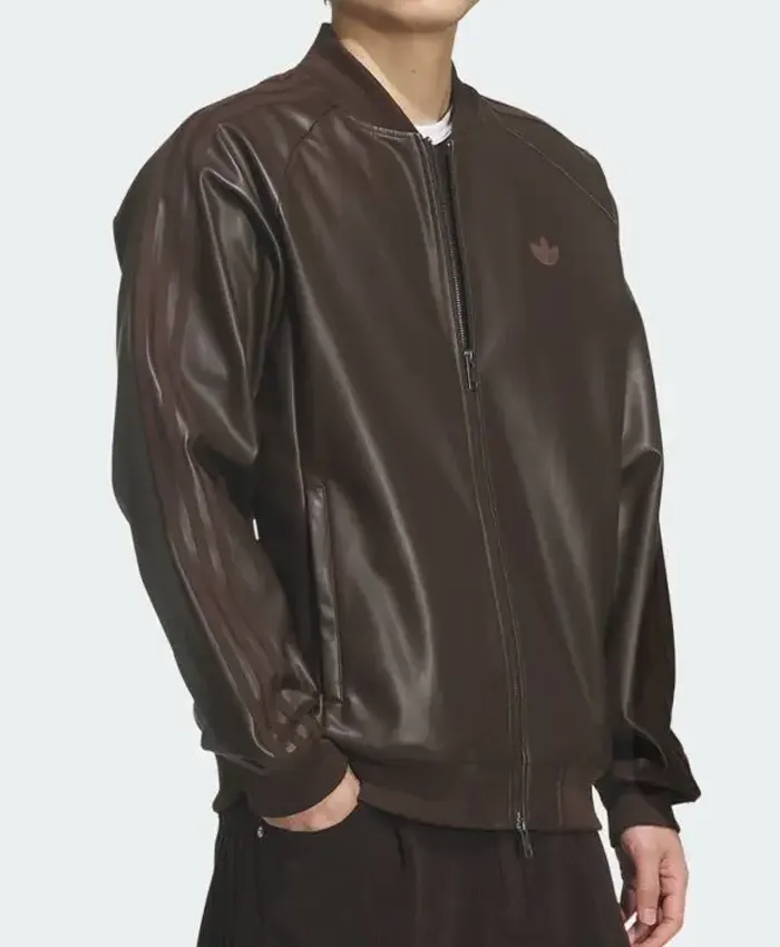 2026 Adidas Originals Brown Leather Bomber Jacket