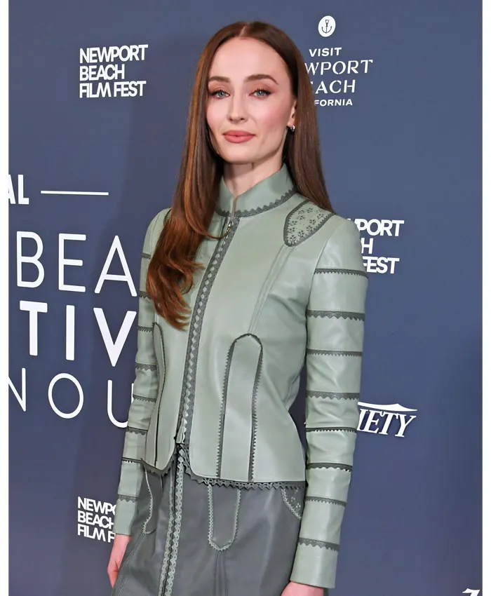 Newport Beach Film Festival Honours 2026 Sophie Turner Green Leather Jacket