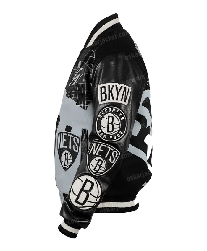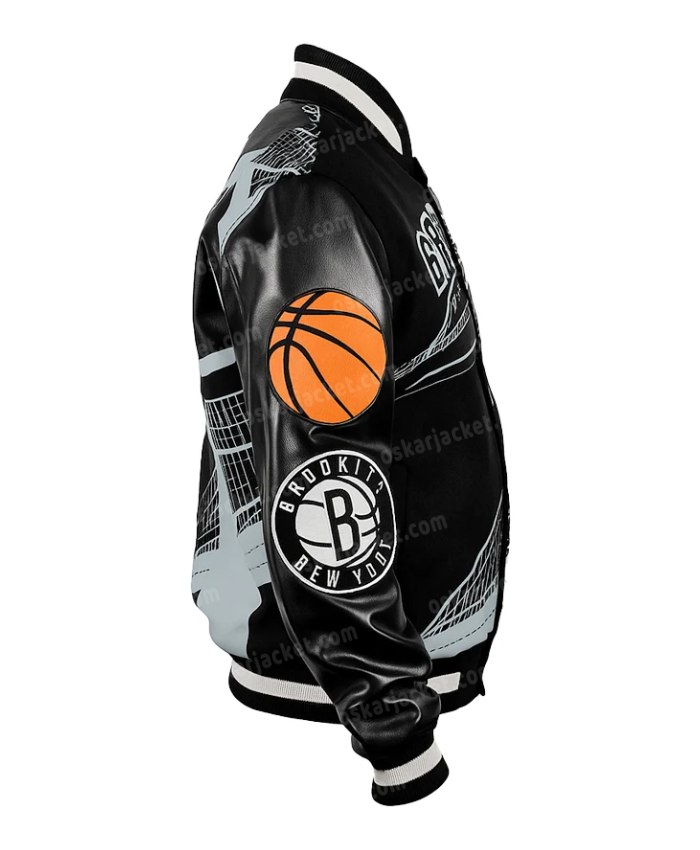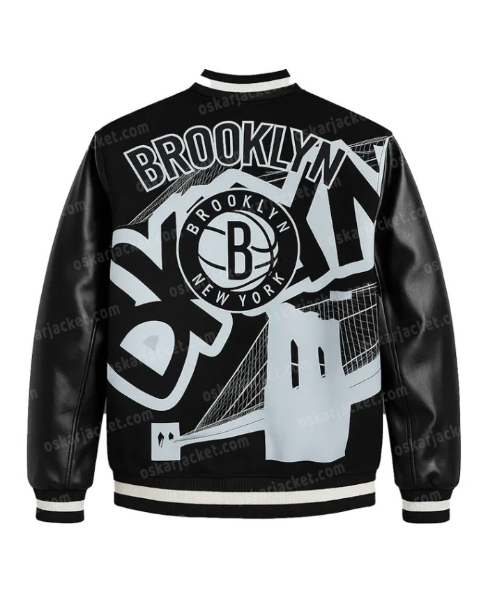 Amalia Brooklyn Nets Black Leather Varsity Jacket