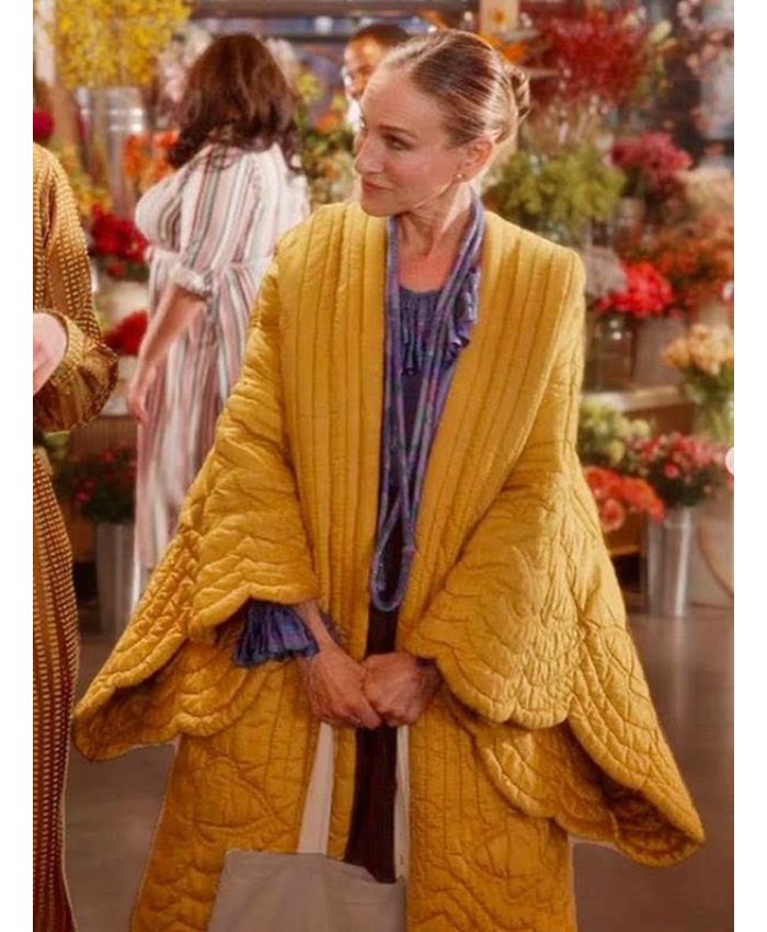 And Just Like That S2 Carrie Bradshaw Yellow Scalloped Quilted Coat