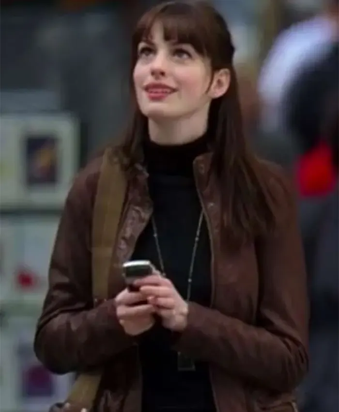 Anne Hathaway Movie The Devil Wears Prada 2 Andy Sachs Brown Leather Jacket
