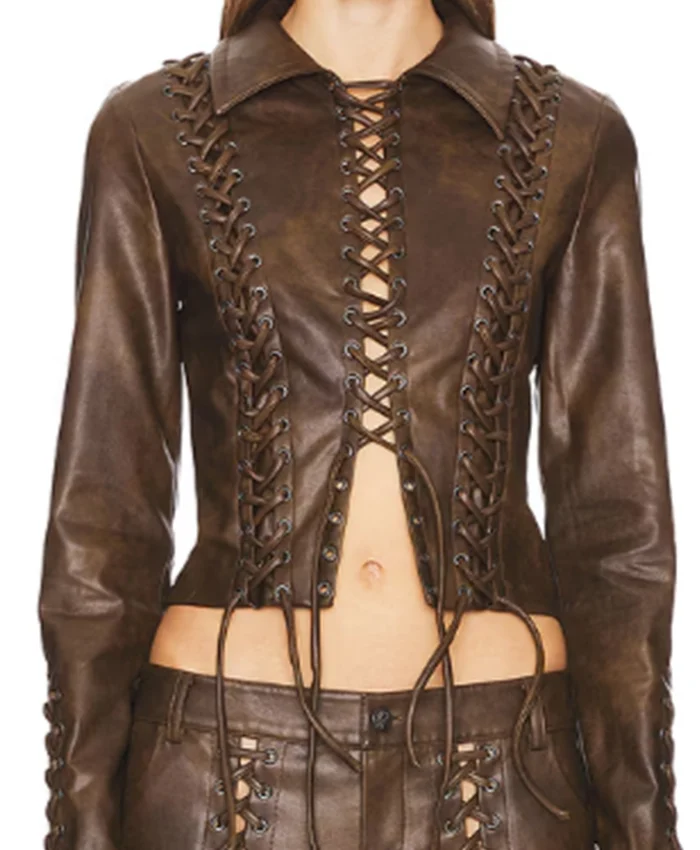 Belle Skinner Marshals S01 Lace-up Leather Jacket