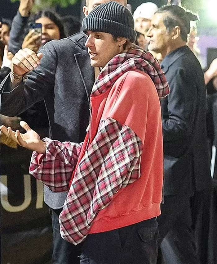 Justin Bieber, a pop icon, attended Billie Eilish’s listening party (which some people mistakenly think was a concert) back in 2024 with his wife, Hailey Bieber, wearing an oversized or loose-fit, red flannel hooded jacket. As Bieber is a highly popular Canadian music artist, singer, and actor, the Billie Eilish Concert Justin Bieber Red Jacket went viral among Bieber fans in no time. As a male fan of Justin Bieber or someone who loves wearing fashionable jackets, you would love to have the same jacket. Then, look at none other than the Oskar Jacket!
