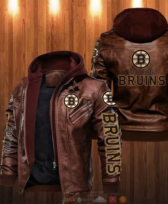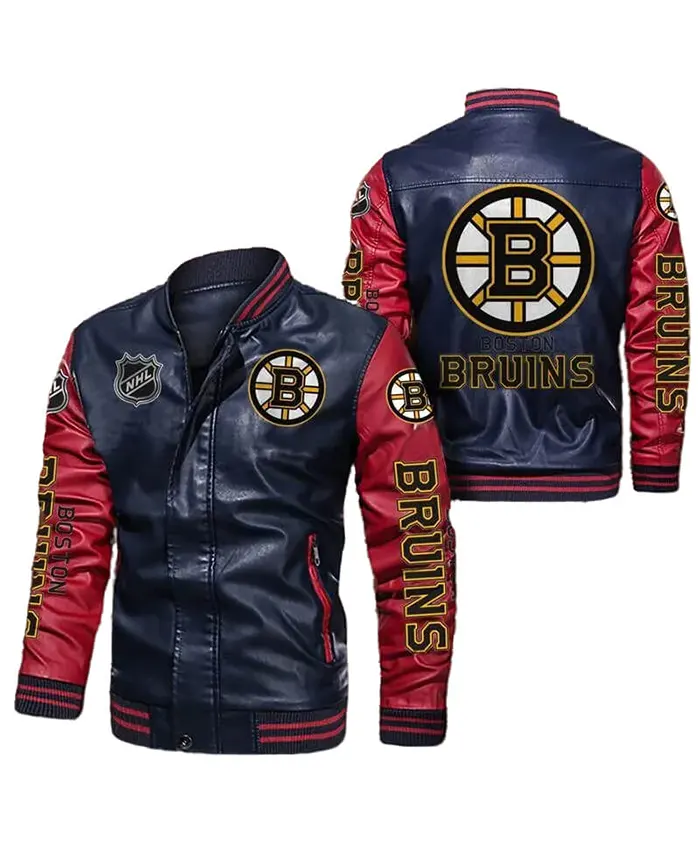 Boston Bruins NHL Team Full Zip-Up Leather Jacket On Sale