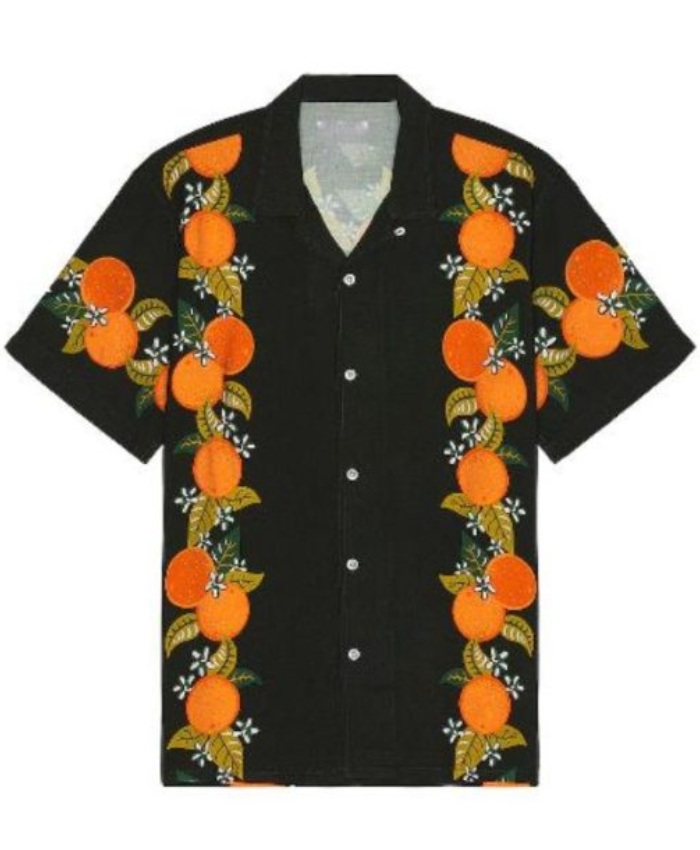 The loud graphics and striking colors of this Perfect Match S03 Clayton Echard Camp Collar Button Up Oranges Tropical Shirt In Black make it unique and playful. It has the youthful charm that all Gen Z want in their closet. Its breathable cotton fabric and half sleeves ensure comfort while its shirt style collar, and button closure gives this shirt a classic touch.