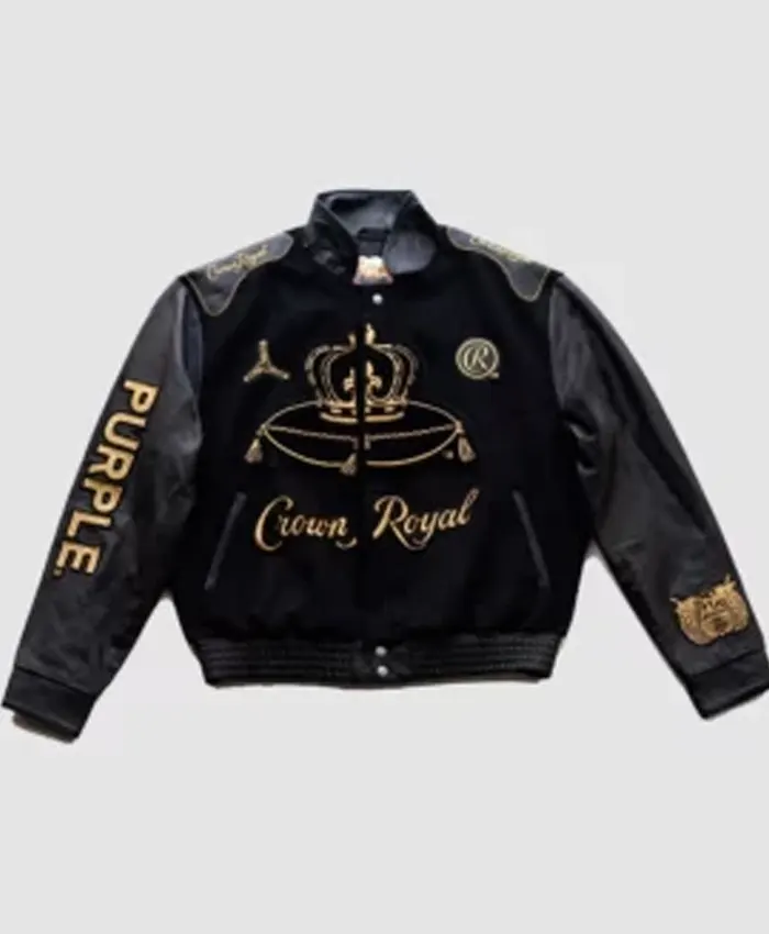 Crown Royal x Purple Brand Black Varsity Jacket for Men and Women