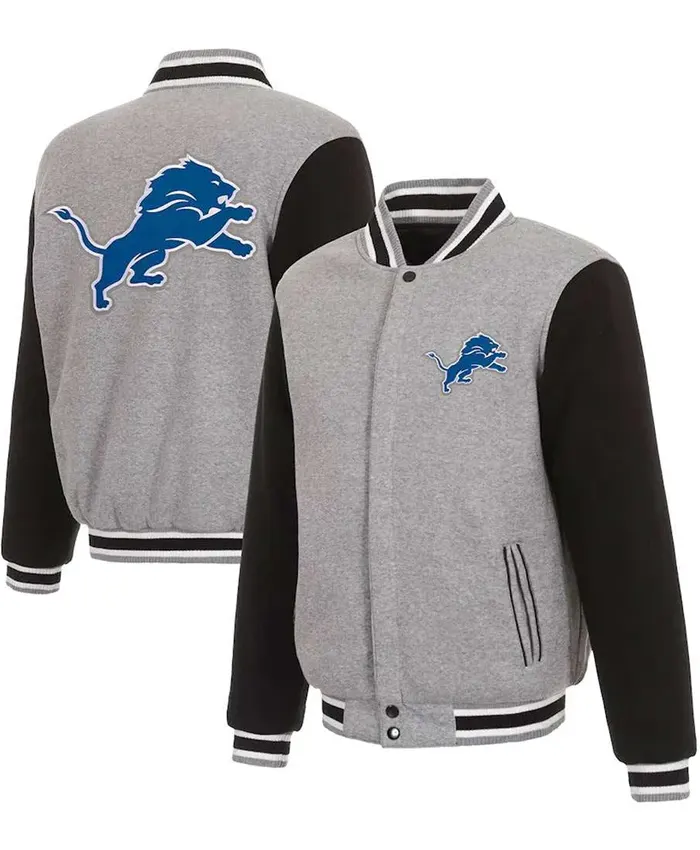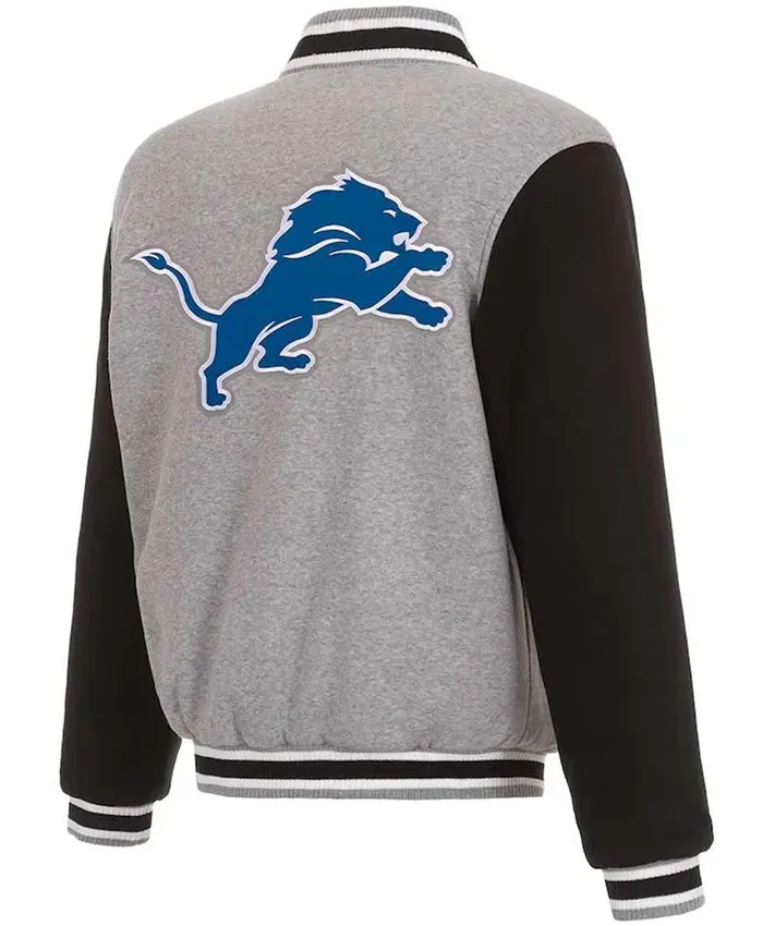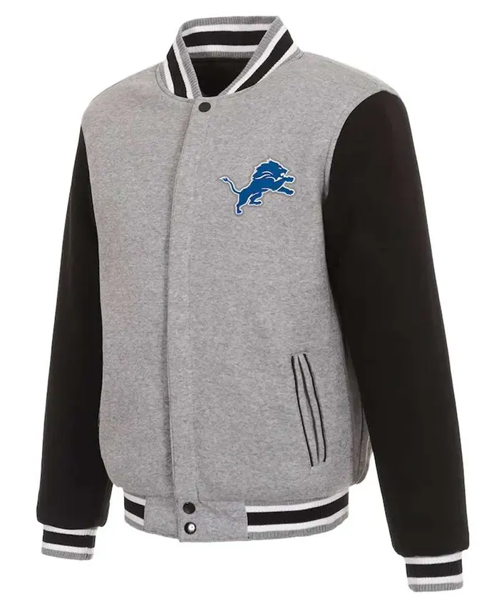 Detroit Lions Grey and Black Varsity Wool Jacket