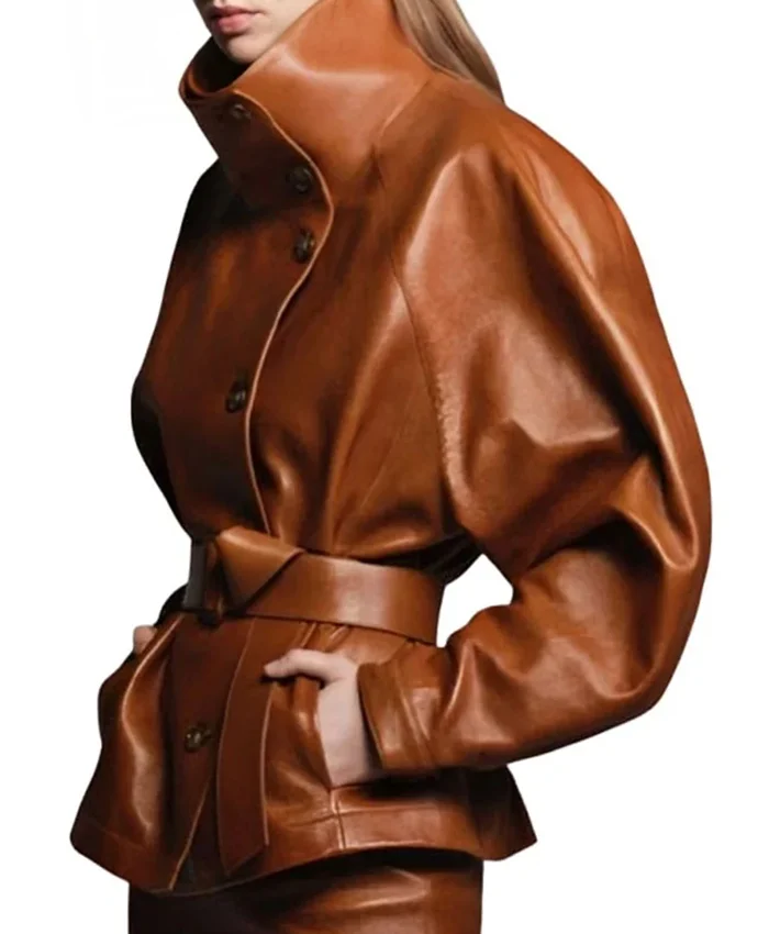 Dune 3 Movie Premiere Zendaya Brown Leather Jacket