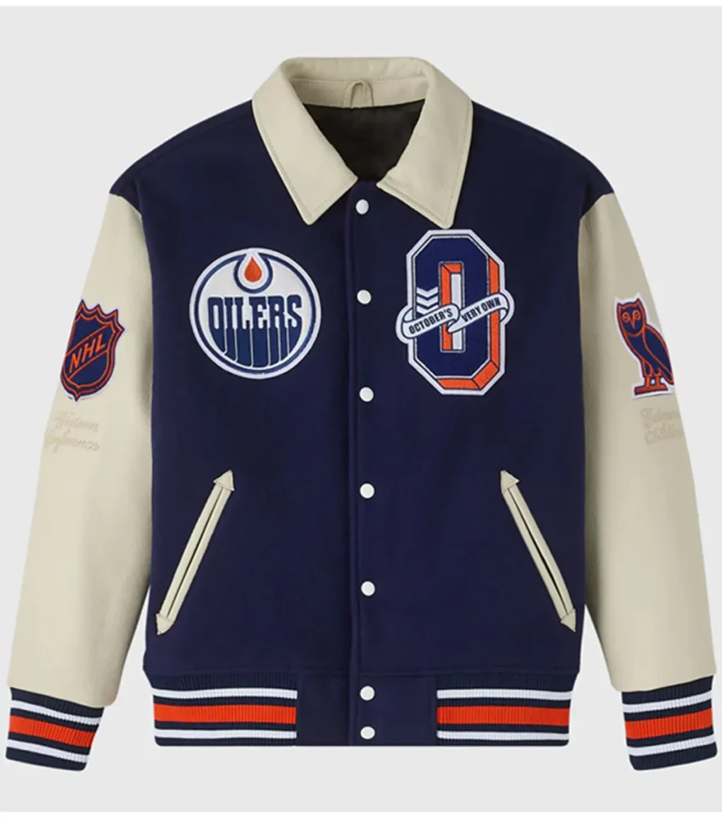 Edmonton Oilers Navy and Beige Varsity Jacket