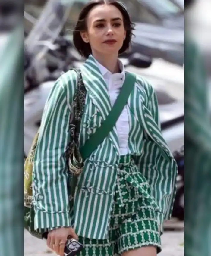 Emily in Paris Emily Cooper Geen and White Stripped Blazer