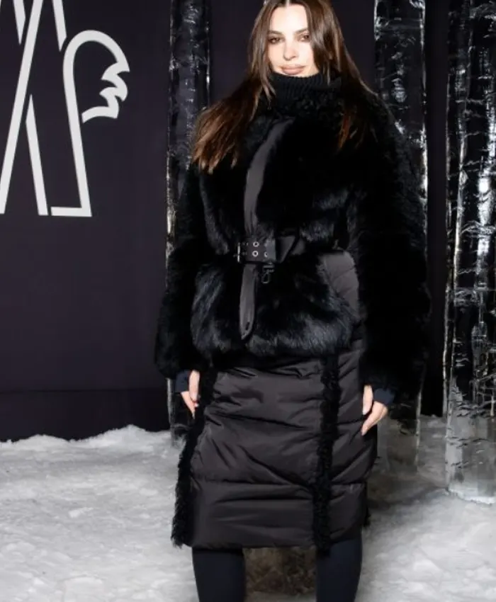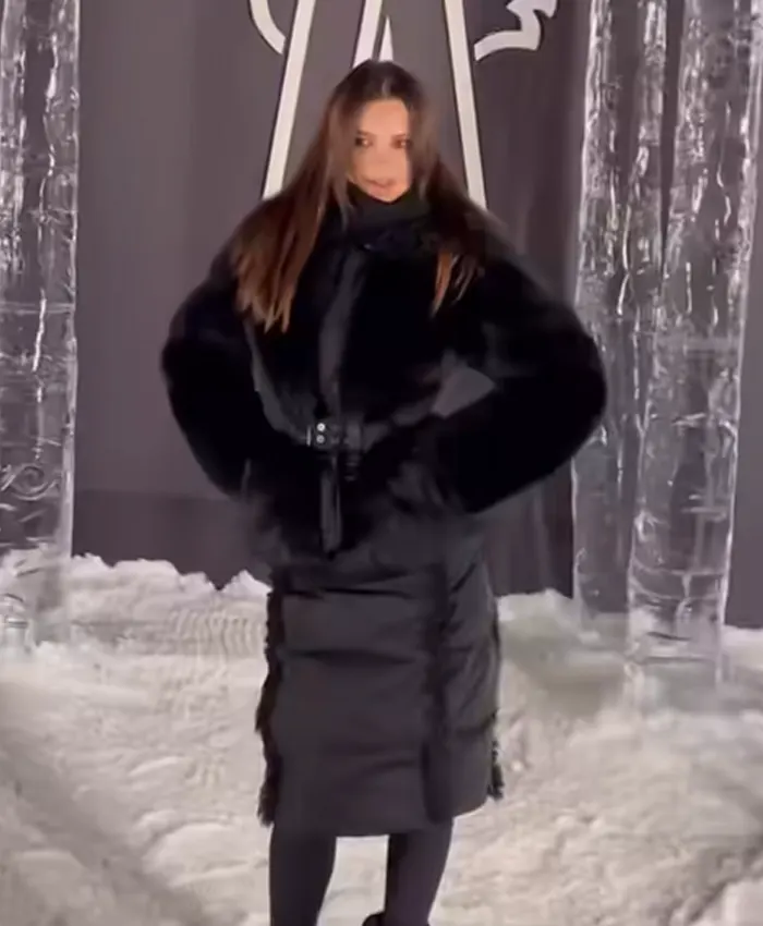 Emily Ratajkowski FW26 Show Black Belted Padded Coat