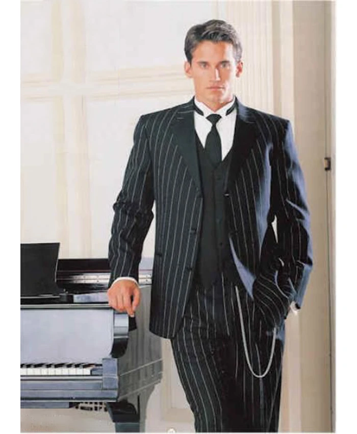 Emory 3 Piece Pinstripe Black Tuxedo Suit