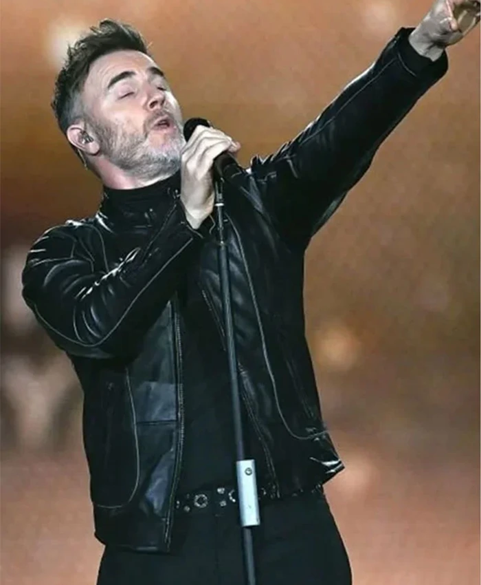 Singer Gary Barlow F1 75 Live Show Black Leather Jacket On Sale
