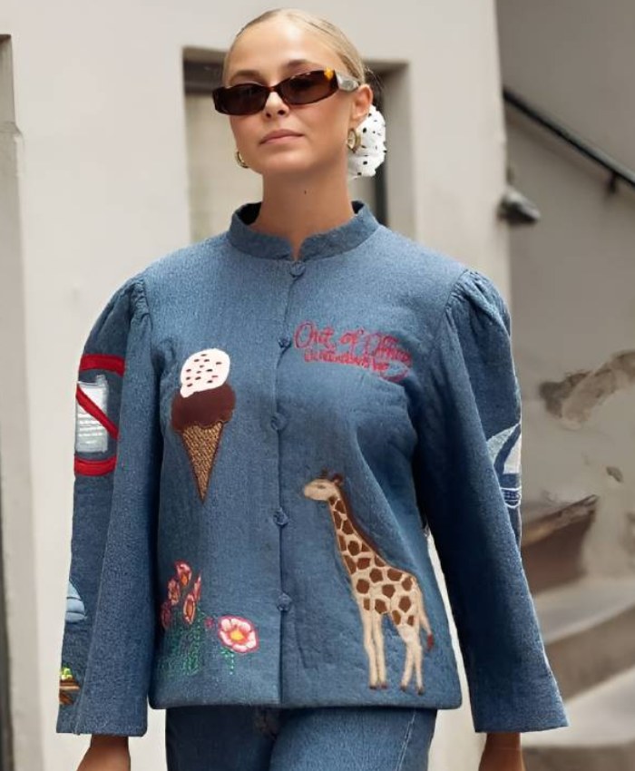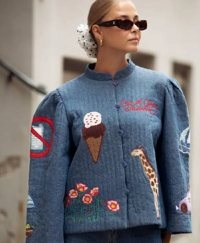Danish fashion designer, Freya Dalsjo Copenhagen Fashion Week featured her Spring Summer 2026 (SS26) Collection in 2025 with gorgeous guests. During the event, many statement pieces caught attention, especially the Freya Dalsjo Copenhagen Fashion Week SS26 Denim Jacket. The jacket mentioned earlier had quirky details on it, making it a standout statement piece at the same event. At Oskar Jacket, we have created a very similar jacket for you.
