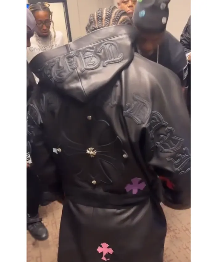 Gervonta Davis Cross Patches Black Leather Trench Coat