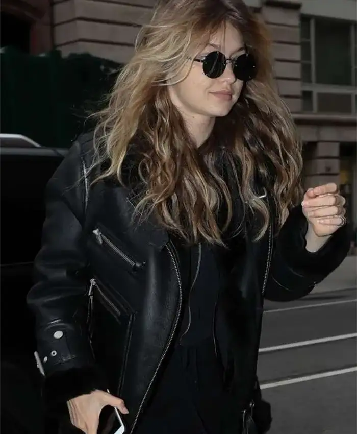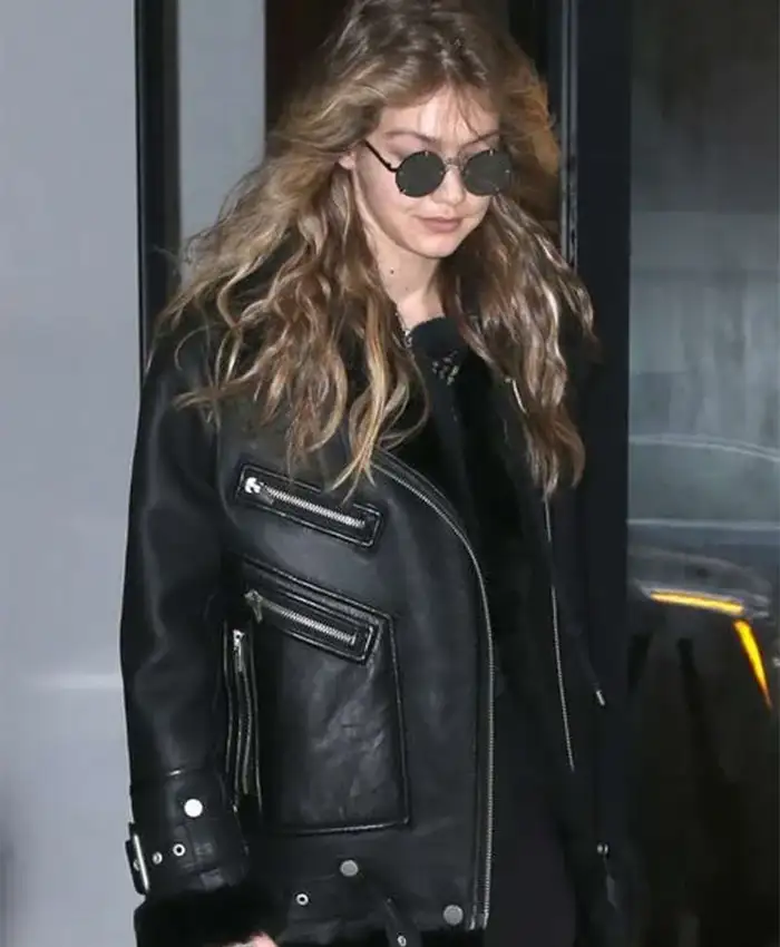 Gigi Hadid Motorcycle Black Shearling Jacket