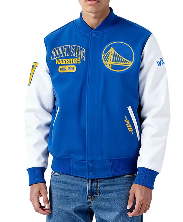 Golden State Warriors City Arch Royal and White Varsity Jacket
