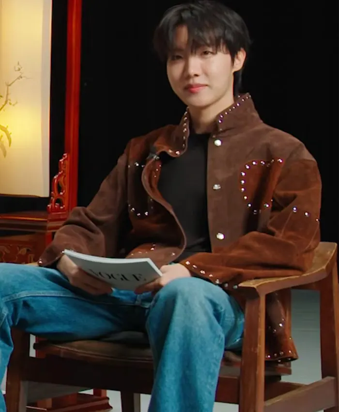 BTS Jung Ho-seok Teaches You Korean J Hope (Hobi) Studded Brown Suede Leather Western Jacket