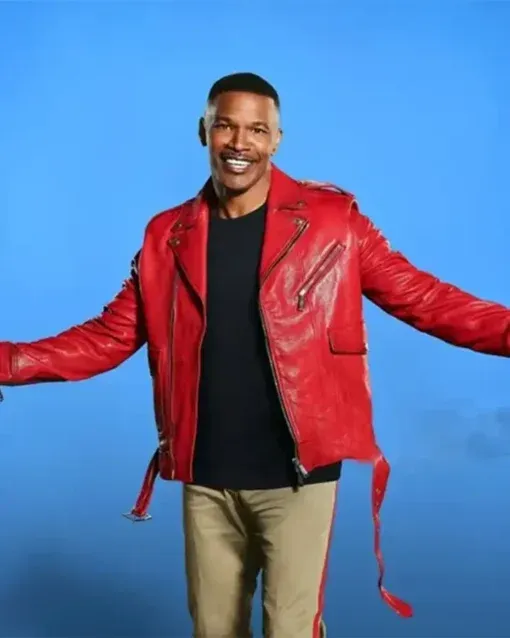 Jamie Foxx on Beat Shazam Red Leather Jacket