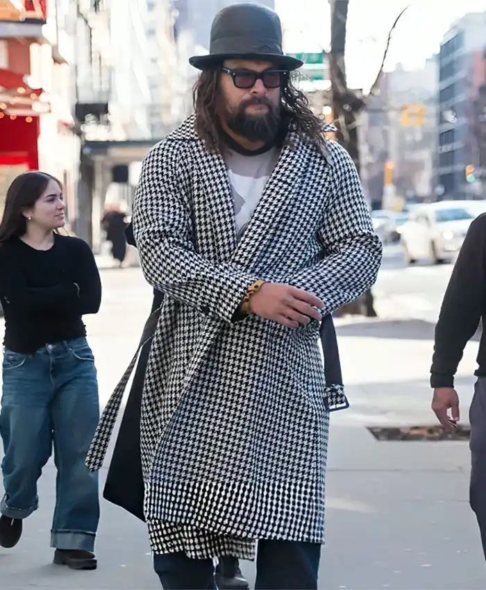 Jason Momoa NYC 2025 Houndstooth Coat