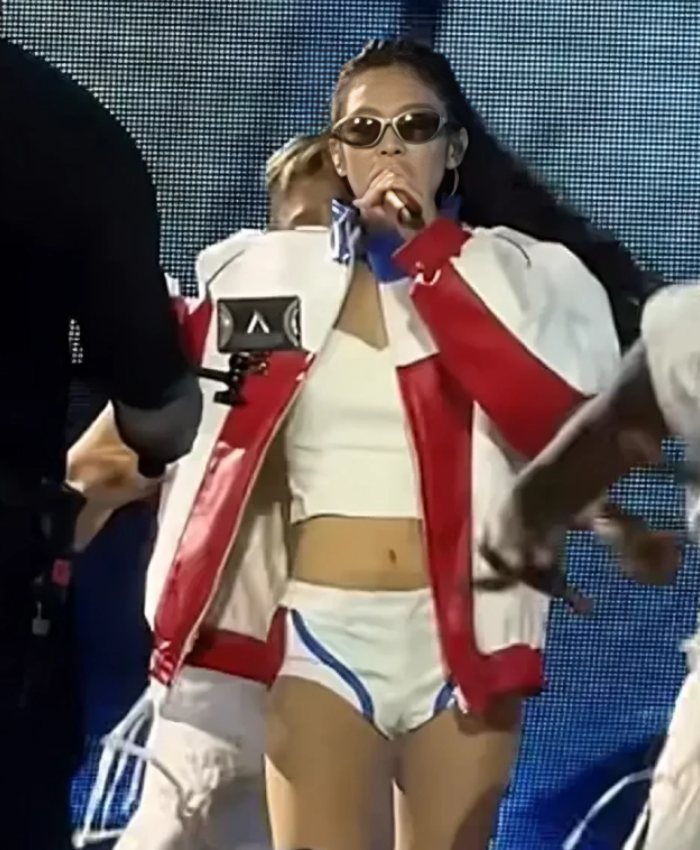 Blackpink Deadline World Tour Paris Jennie Kim White & Red Zipper Leather Jacket