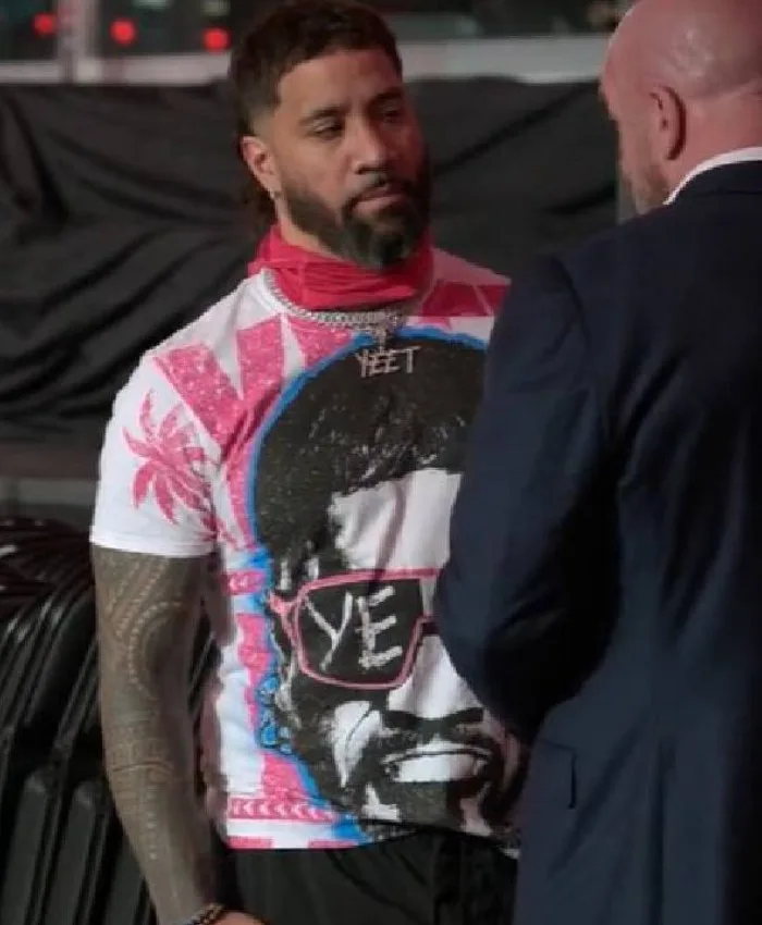 Jey Uso, a proud son of a WWE Hall of Famer Rikishi, has not only made an excellent reputation as a Singles Wrestler but has also made many WWE t-shirts popular and best-selling. The Jey Uso Yeet Pink Shades T-shirt is no different in this respect, which is available at Oskar Jacket as a cotton t-shirt. As a graphic t-shirt, this t-shirt displays Jey USO’s pink shades with his catchphrase YEET and his face print. It is a soft and breathable, unisex t-shirt, which makes an excellent addition to your summer wardrobe.