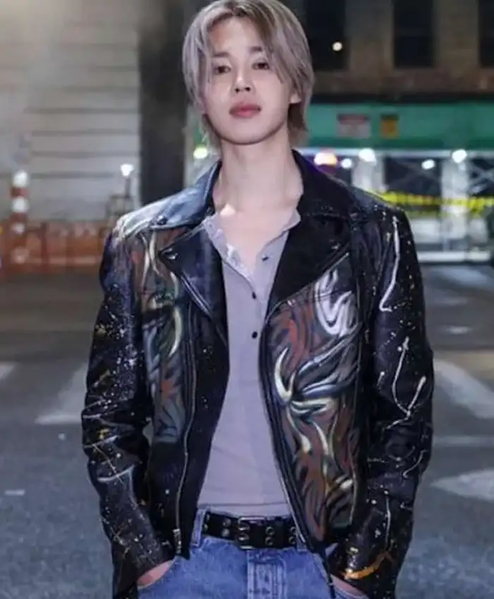 Jimin Who Song Black Leather Biker Jacket