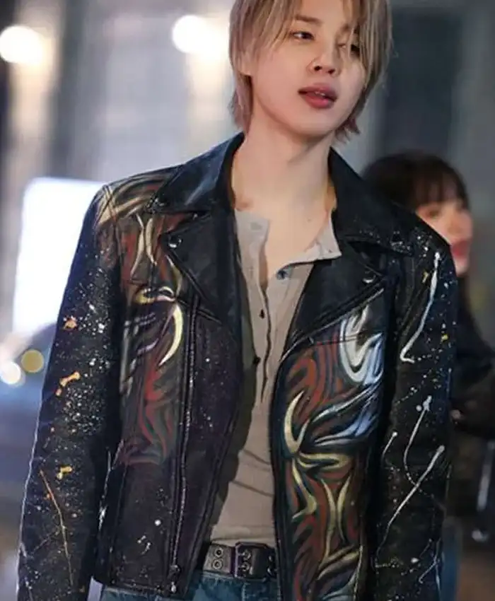 Be the first to review “Jimin Who Song Black Leather Biker Jacket”