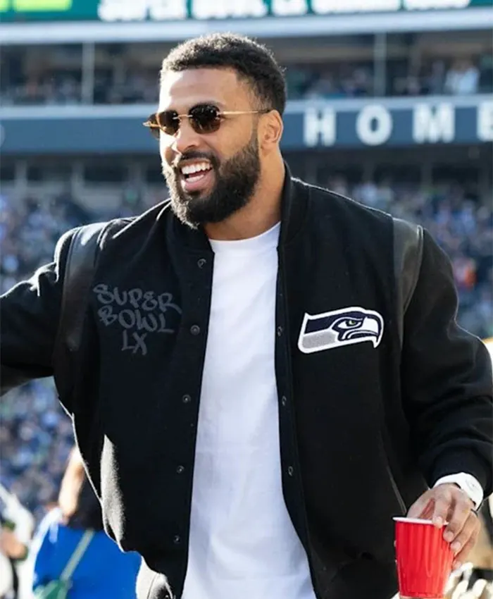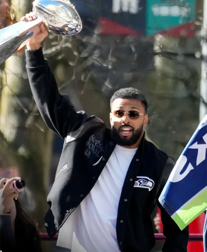 Julian Love Super Bowl LX Champions Parade Seattle Seahawks Black Wool Varsity Jacket