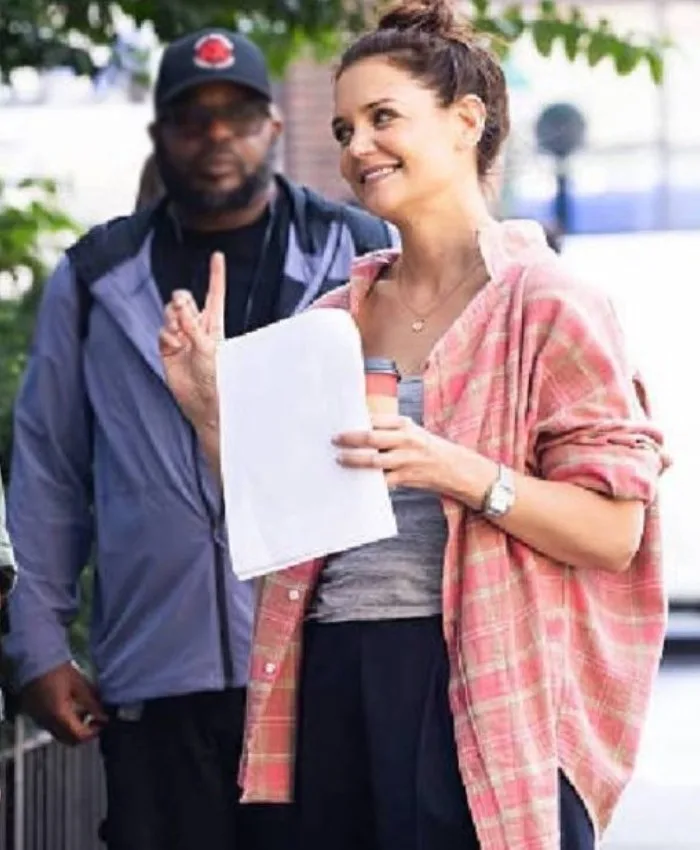 Katie Holmes Happy Hour 2025 Plaid Shirt