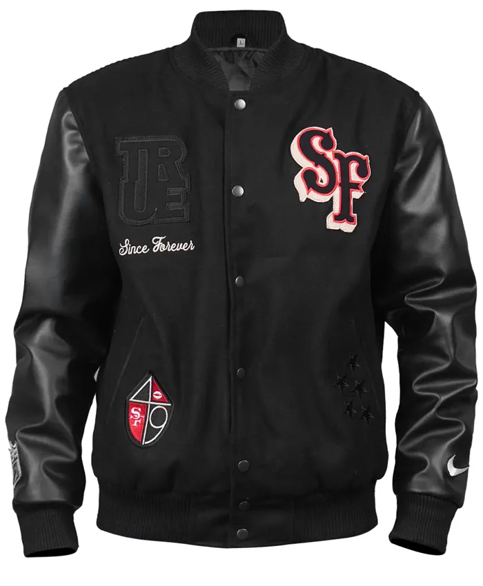 Since the San Francisco 49ers Kendrick Bourne Jacket is in top trend. It is best to look into its design and understand what makes this special. Designers stitch this outerwear with wool and real leather, giving it a bold and robust style. At the same time, they add beautiful details, with the SF logo in bold lettering, enhancing the overall look.