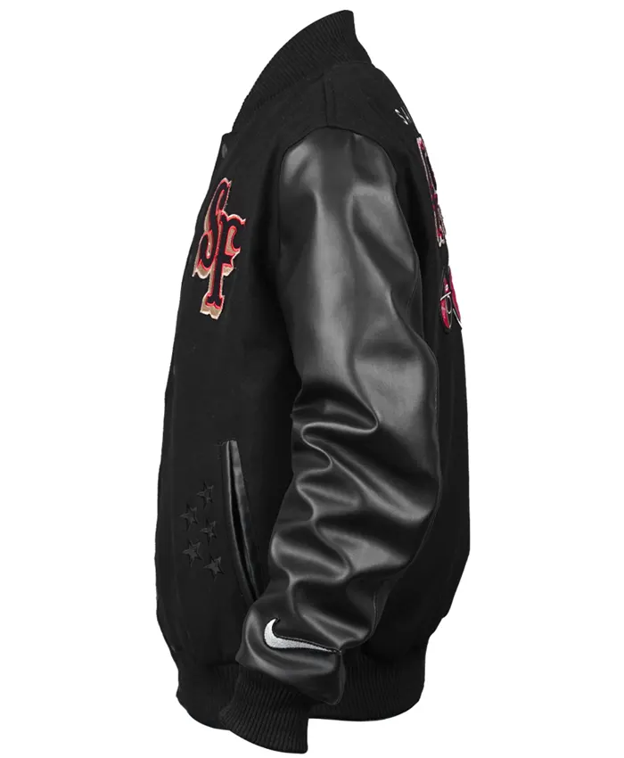 Beyond that, you can achieve a smart sporty style; all you need to do is take care of layering. The 49ers Kendrick Bourne Varsity Jacket works well if you layer it on top of a hoodie or a T-shirt. Furthermore, you can also add denim jeans to uplift your sporty vibe. Likewise, if you go for sneakers or boots, both will do perfectly fine. They will complement your polished appearance.