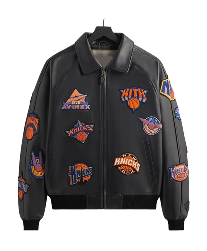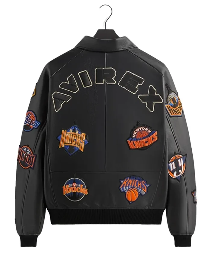 Knicks x Kith x AVIREX Icon Black Leather Jacket