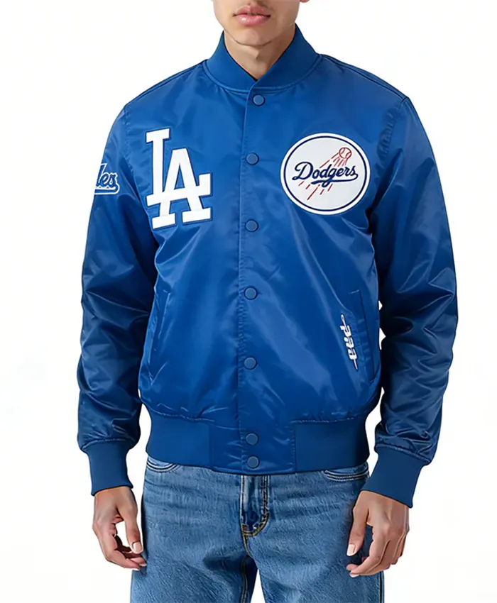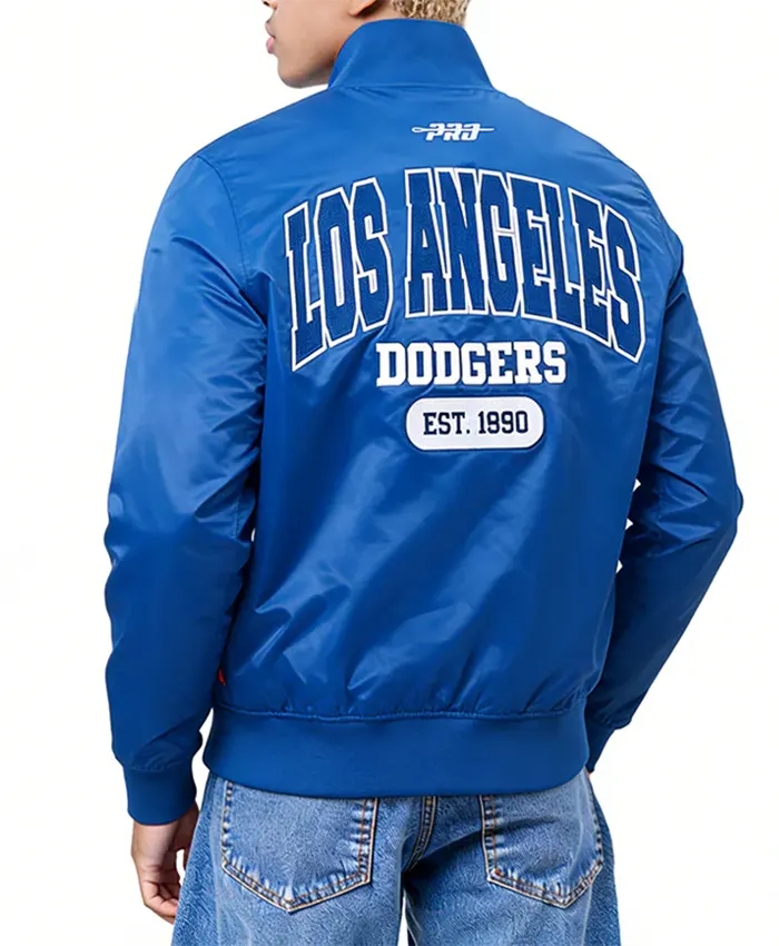 LA Dodgers City Arch Blue Satin Bomber Jacket
