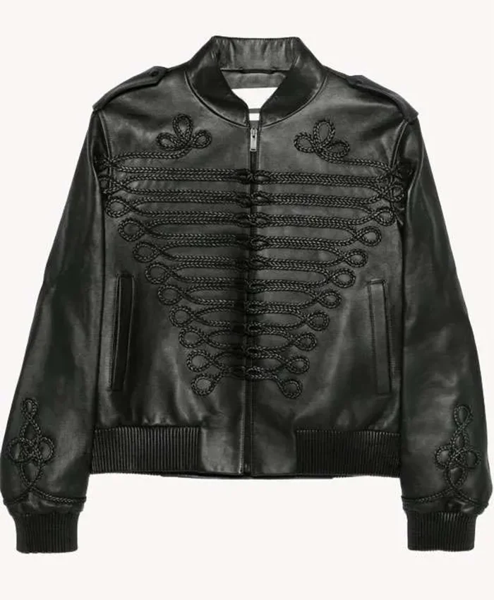 Shop Lady Gaga Concert 2025 Black Embroidered Leather Jacket