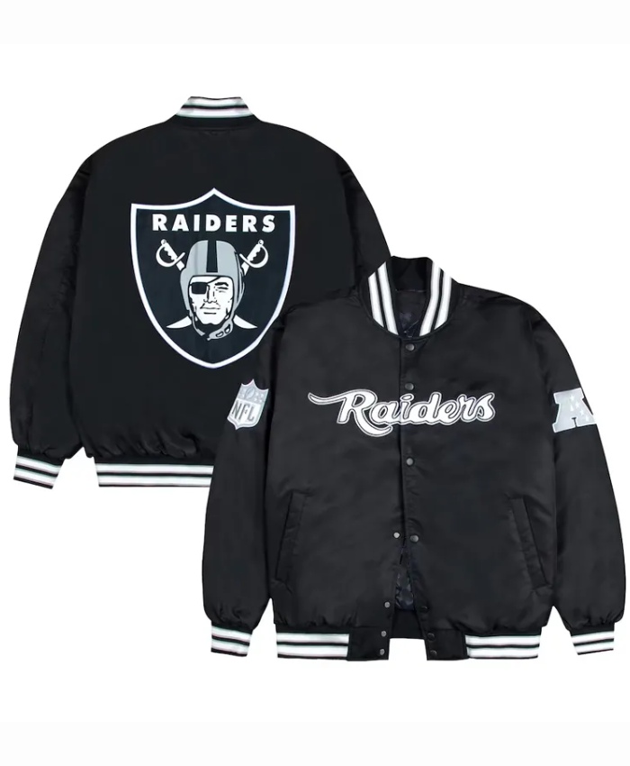 Las Vegas Raiders Gray and White Rib Bomber Black Jacket