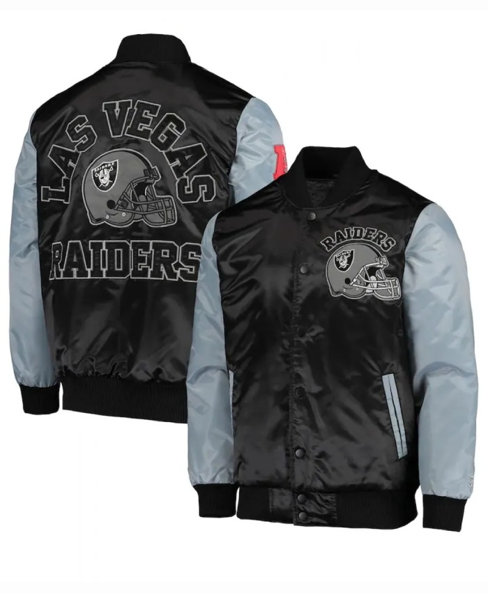 Las Vegas Raiders Starter Grey and Black Satin Jacket