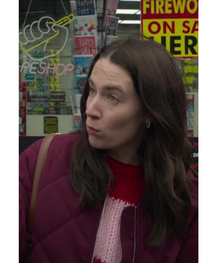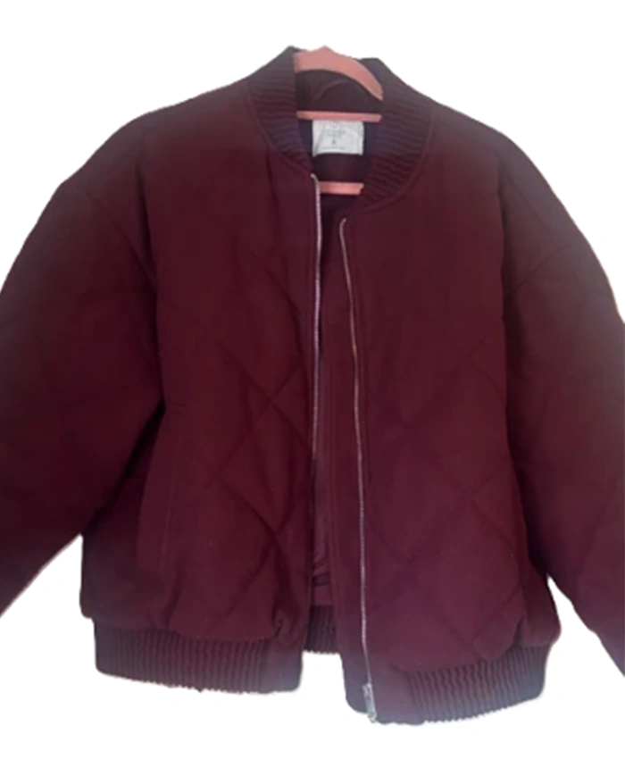Siobhán Cullen TV Series Babies 2026 Lisa Burgundy Quilted Bomber Jacket