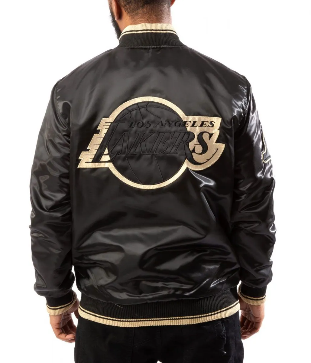 Los Angeles Lakers Black Gold Satin Bomber Jacket