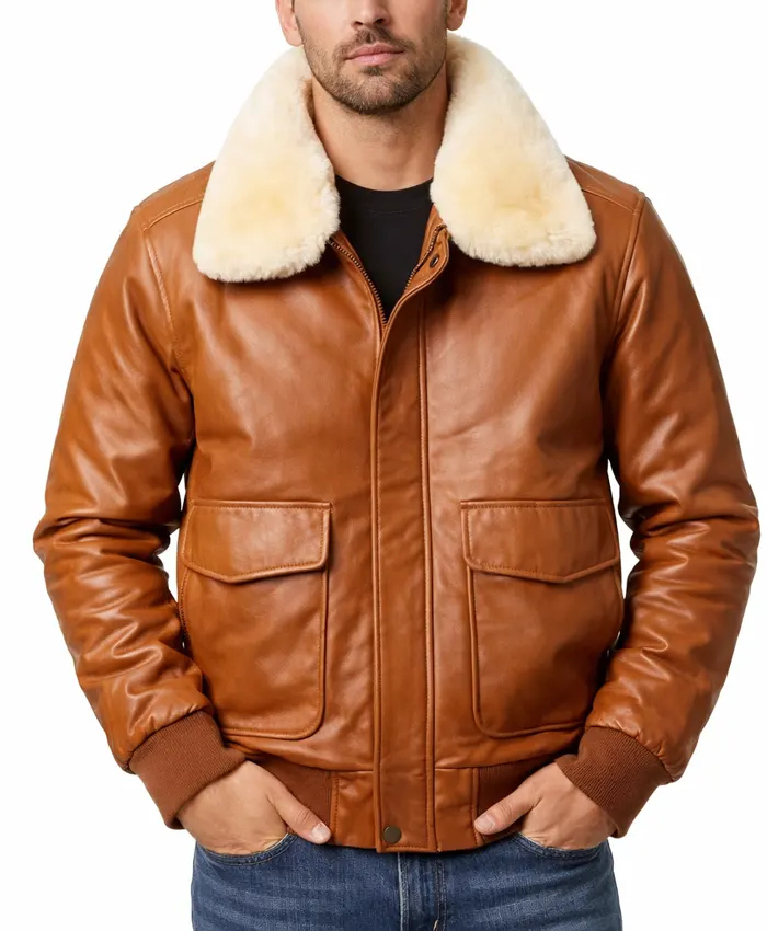 Men Brown Aviator Sheepskin Leather Jacket
