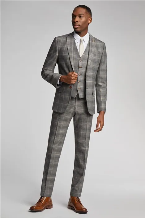 Mens 3 Piece Slim Fit Checkered Grey Executive Prom Suit