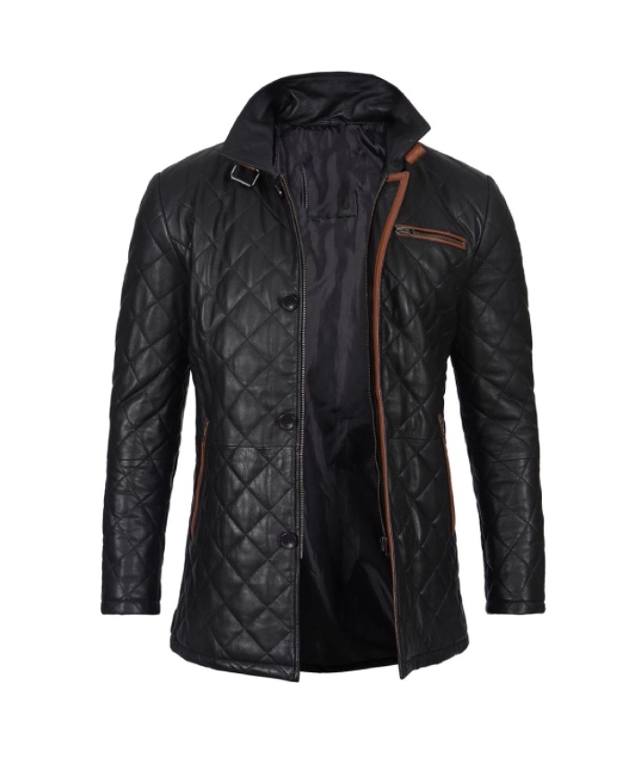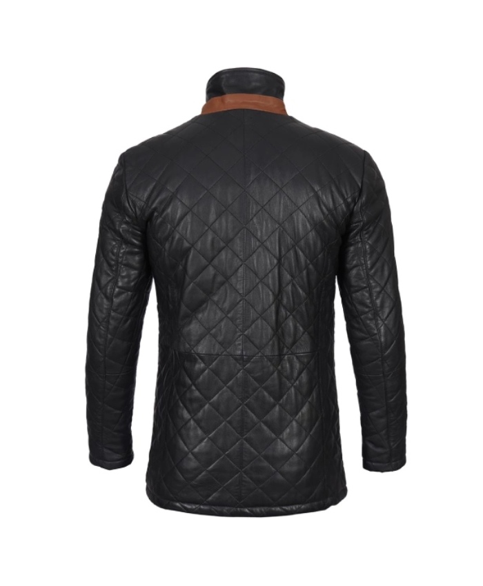 Mens Black Quilted Leather Coat