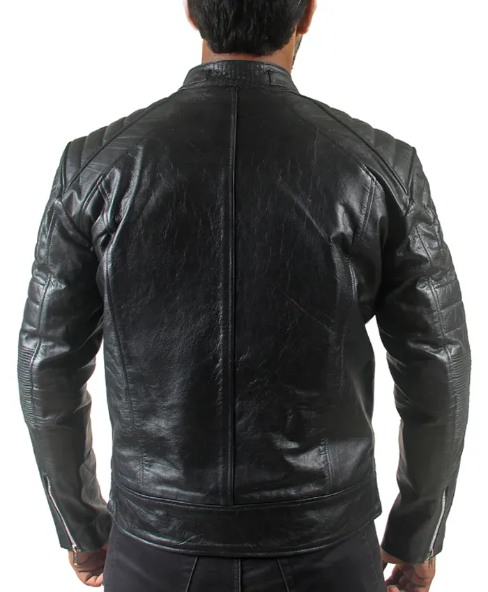 Mens Quilted Motorcycle Cafe Racer Leather Jacket