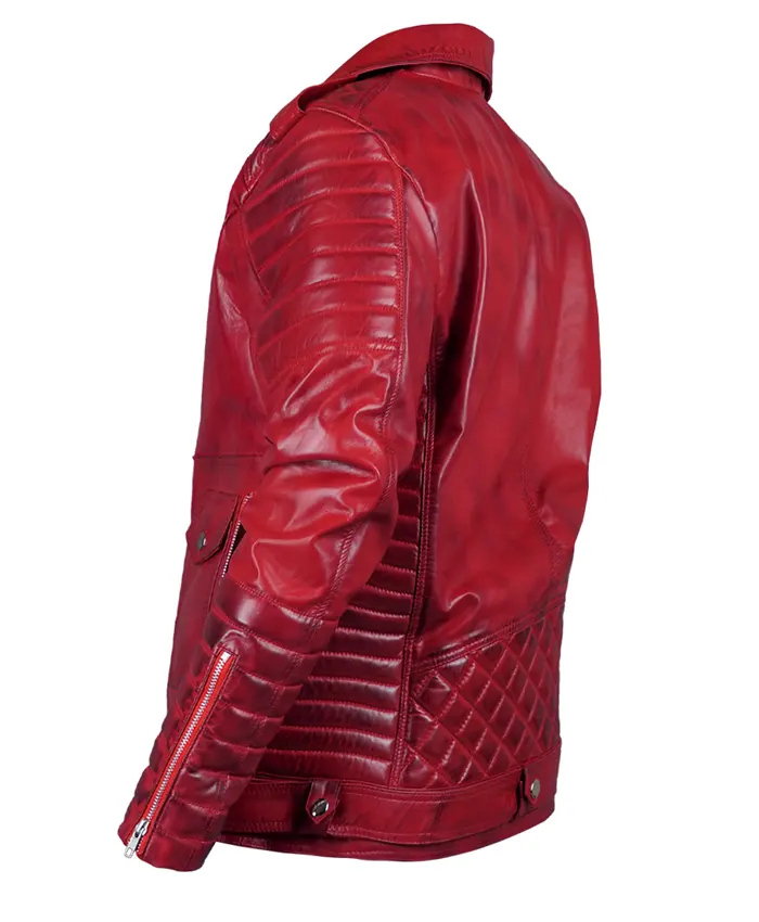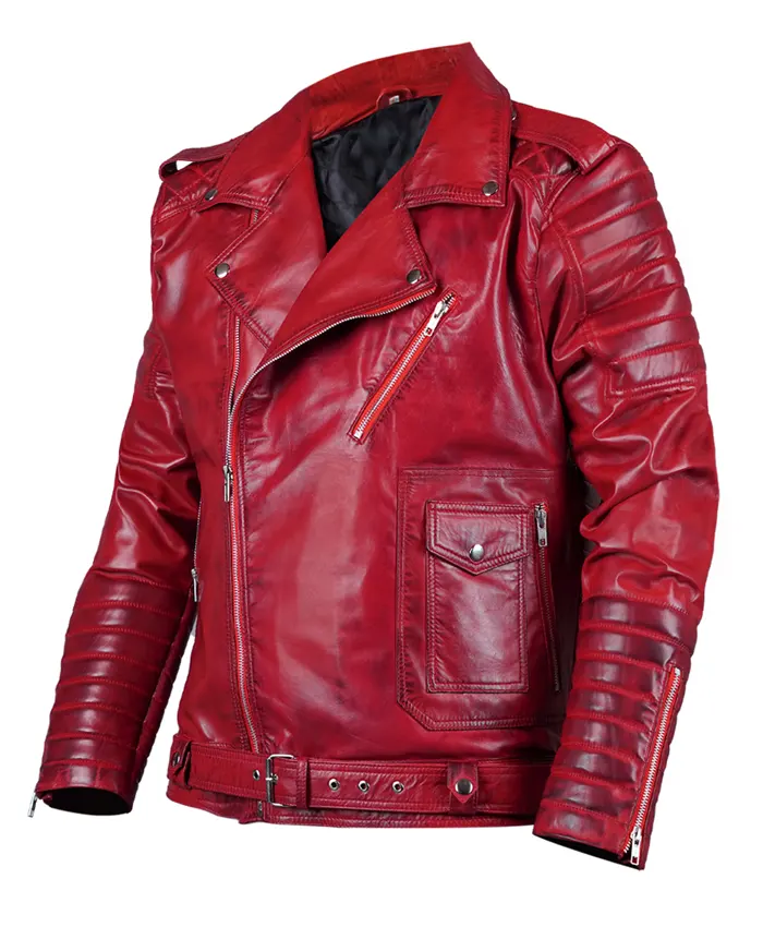 Be the first to review “Men’s Red Distressed Biker Leather Jacket”