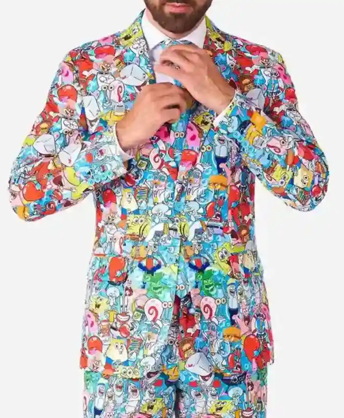 Mens SpongeBob Frenzy Printed 2 Piece Suit