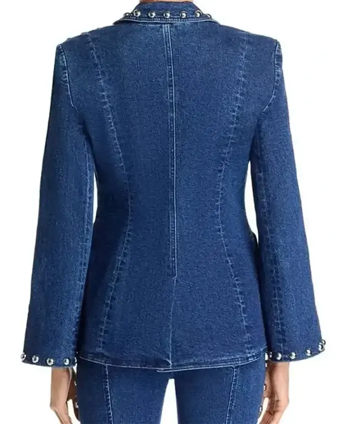 The Shayanne Millet Denim Studded Blazer, on the other hand, is a very important part of the Margo’s Got Money Troubles Wardrobe Collection. It is made of strong denim with a smooth viscose lining. So it can be worn over and over again. The lapel collar, open hem cuffs, and buttoned closure are also made to keep their shape and work over time. The two side pockets and one inner pocket. It makes it useful for everyday use without changing the clean lines of the blazer.