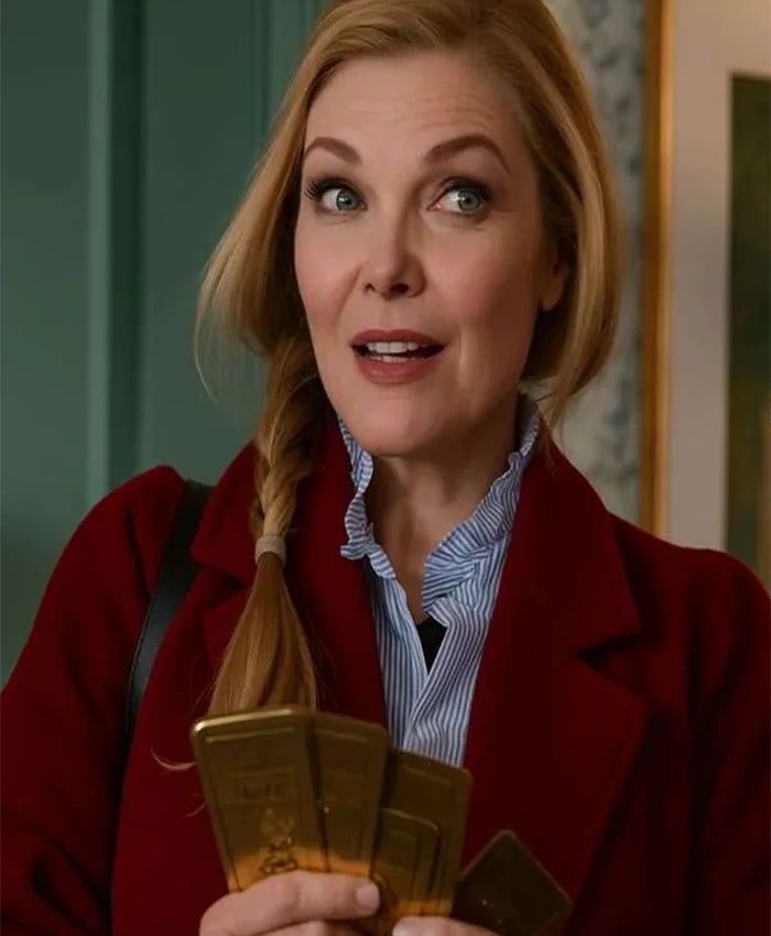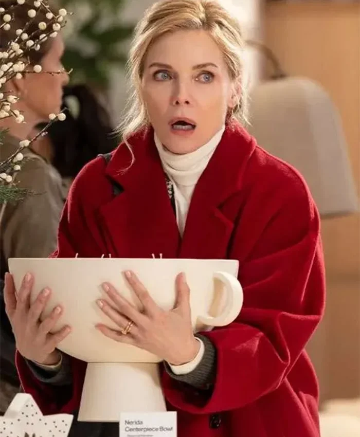 Claire Movie Oh What Fun 2025 Michelle Pfeiffer Red Wool Trench Coat