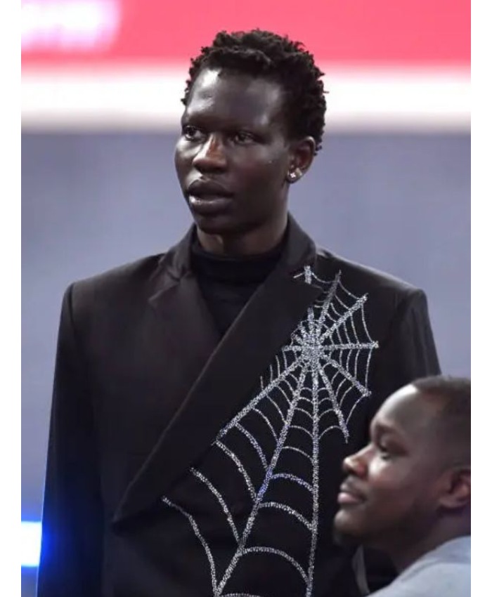 Bol Bol NBA Draft Silver Spider Web Black Suit