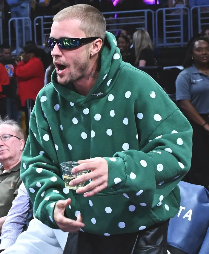 People all over the world enjoy watching their favorite celebrities at public events, such as an NBA game. This only shows that celebrities are people too and have common interests just like us. Moreover, the only thing setting them apart is their dressing and styling. Beyond that, if we talk about one specific individual, then Justin Bieber. He is in the news as he was seen wearing NBA Justin Bieber Polka Dot Green Hoodie. Every fan who is quite amused with Justins styling is eagerly waiting to try it on. This amusing hoodie stands out effortlessly, so let’s explore the design and specifications that make it the perfect apparel choice for you.
